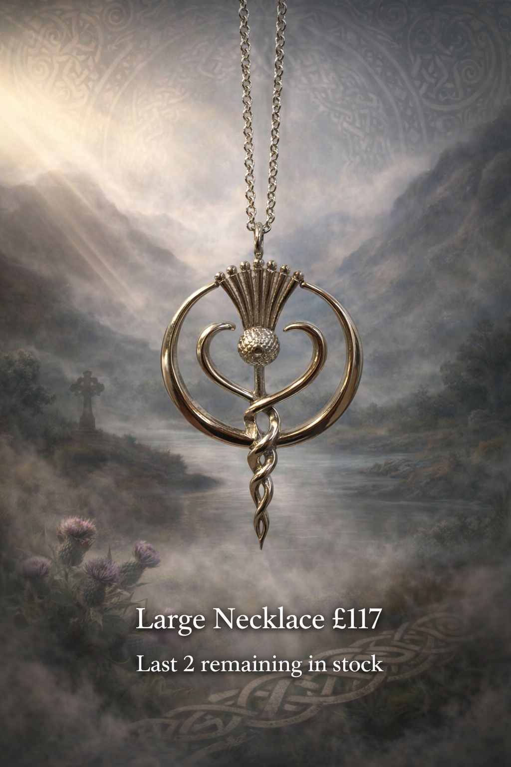 We only have 2 left of Marion’s original stunning Pendant Design! Handmade Silver Thistle Pendant by Melina Clark. It encapsulates our company’s connection between nature, the elemental forces, human nature and the sacred, spiritual energies.